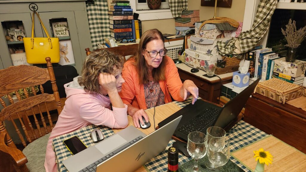 Was für ein Zufall, dass wir hier, bei Barbara, dann Debby getroffen haben, die sich hobbymäßig mit Ahnenforschung beschäftigt und darin eine richtige Expertin ist. Sie fand einige Details über Andreas‘ Großvater heraus, die das Bild verändern. Und sie entdeckte auch eine Traueransprache für einen meiner Großonkel, dessen Eltern Anfang der 1930er Jahre in die USA ausgewandert sind und sich hier ein neues Leben aufgebaut haben. Während des 2. Weltkrieges und danach haben sie die Familie meiner Mutter mit Carepaketen, Lebensmitteln, Kleidern und Schuhen unterstützt. Mich berührt und tröstet die Einsicht, dass es in meiner Familie Menschen gab, die offensichtlich die Zeichen der Zeit erkannten und – vielleicht auchvaus ihrem chrsitlichen Glauben heraus – das große Wagnis auf sich nahmen, ihr vertrautes Leben hinter sich zu lassen, die gefährliche Reise zu wagen und in einer unbekannten Welt neu anzufangen. – Und dass sie auf diese Weise letztlich auch einen Teil dazu beigetragen haben, dass ich ein so gutes Leben hatte und habe.